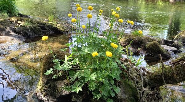 Globeflowers filmed at Skelwith Bridge in the Lake District on the 13th May 2023.